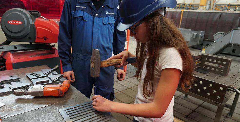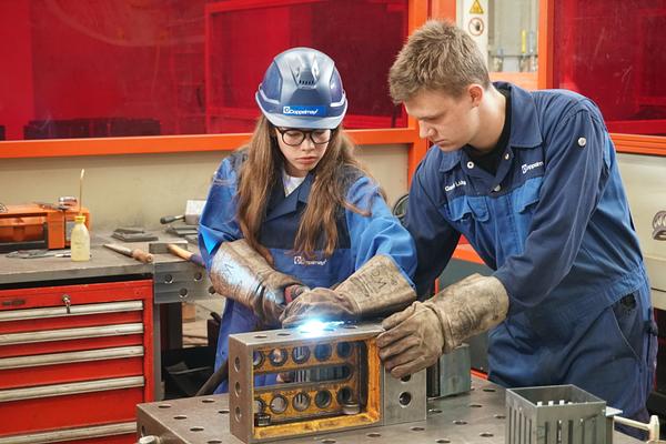 Anschließend gingen wir in den Stahlbau. Hier werden die Teile für die Seilrollen zusammengeschweißt.