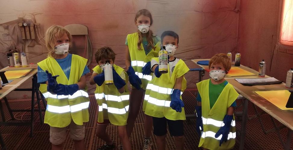 Dann ging es auch schon weiter zur zweiten Station. Lackieren. Das hab ich noch nie gemacht, doch auch hier waren nette Lehrlinge und haben uns alles ganz genau erklärt. Auch wenn ich noch etwas klein bin für die Ausrüstung, hat es trotzdem mit ein wenig Hilfe funktioniert.