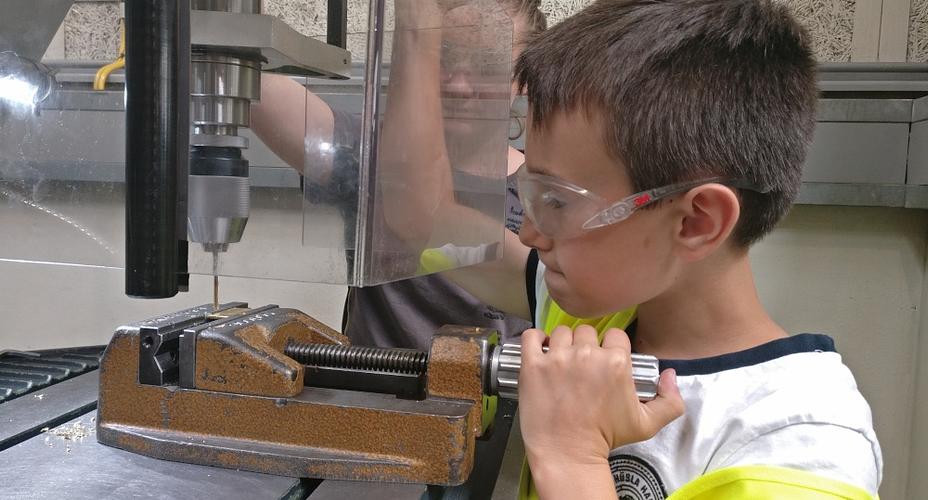 Bei der vierten Station mache ich zuerst ein cooles Namenschild. Ich muss schleifen, bohren und gravieren. Beim Bohren bin ich froh das der Lehrling hilft. Als letztes ging es noch zum Schweißen. Sieht ja richtig gefährlich aus. Zuerst wird mir gezeigt was ich machen soll. Dann bekomme ich wieder viel zu große Handschuhe und schon geht’s los. Und mit etwas Hilfe habe ich auch das geschafft. Zum Schluss gab es noch einen kleinen Test. Ich fand den Tag spitze. Ich habe viel gesehen und gemacht, was ich noch nie gemacht habe. Es freut mich auch dass ich so viele Sachen mit nach Hause nehmen konnte.