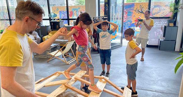 Wir bauten Leonardo - Brücken aus dünnen Holzstäben und testeten diese mit verschiedene Gewichten. Zum Schluss haben wir eine große auch noch gebaut die uns tragen konnte.