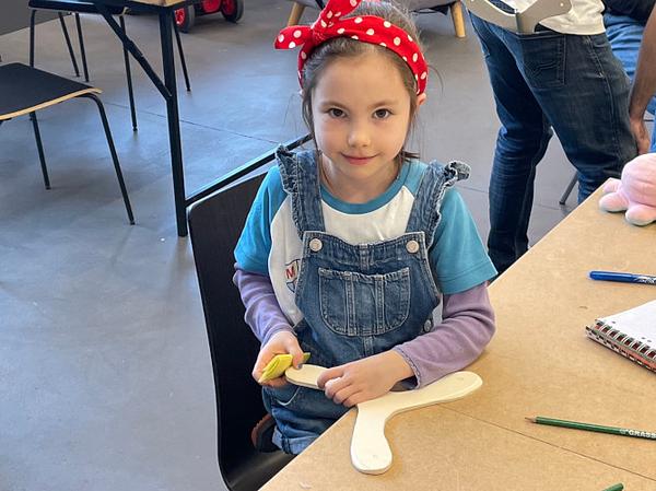 Wir befassten uns mit dem Thema Auftrieb und bauten dafür verschiedene Bumerange - aus Papier und Karton für das Wohnzimmer - und auch welche aus Holz, die für die Wiese geeignet sind.