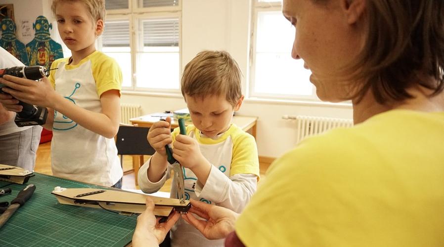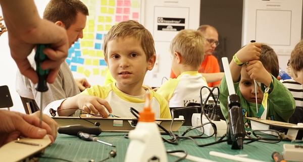 Heute drehte sich alles um Musik. Wir bastelten unser eigenes elektronisches Musikinstrument - E-Gitarre inkl. Pickup, ein selbstgemachtes PreAmp und Kopfhöreranschluss. Ein hammer Projekt! Die E-Gitarren haben wir an einem Lautsprecher angeschlossen und einige haben richtig gerockt! Es war gut zu erkennen welche Eltern früher Rocker waren. :-)