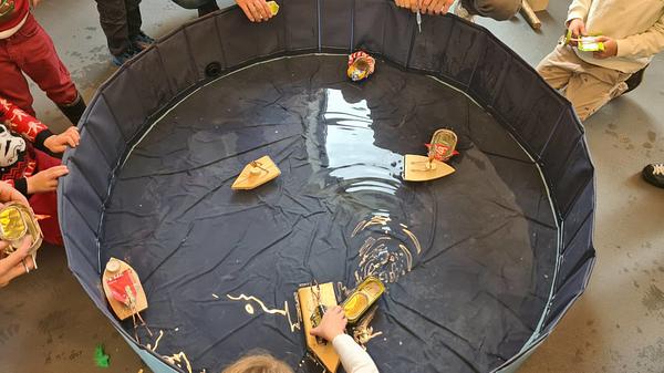 Wir bauten ein Boot mit einem Wasserrimpulsantrieb. Es konnten unterschiedliche Antriebe getestet werden und das Boot sollte kreativ gestaltet werden.