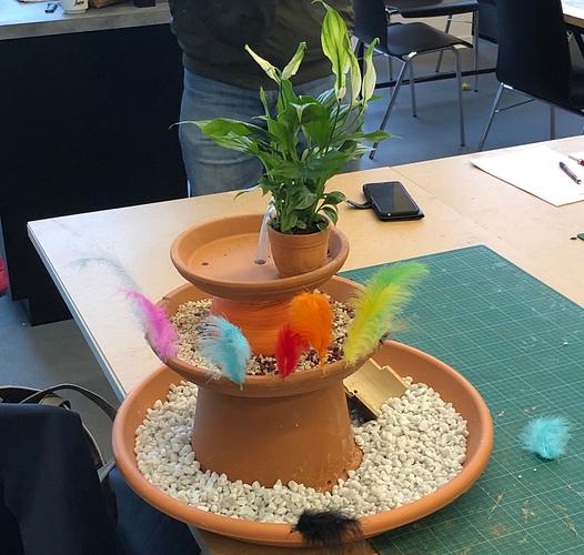 Wir bauten uns unser eigenes Zimmerbrunnen mit einem elektrischen Wasserpumpe.